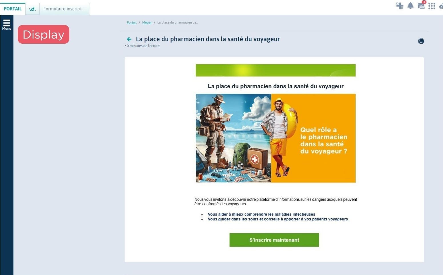 Un clic suffit pour rediriger le pharmacien vers une page display en plein écran, dédiée à votre communication.