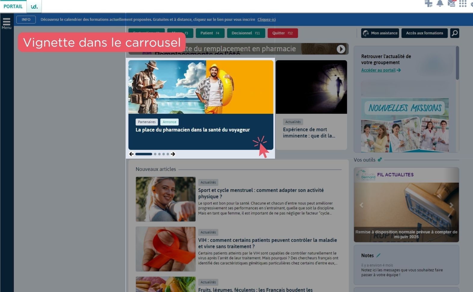 Intégrer votre communication dans le carrousel, c’est assurer votre visibilité directement dans l’outil de travail quotidien des pharmaciens.